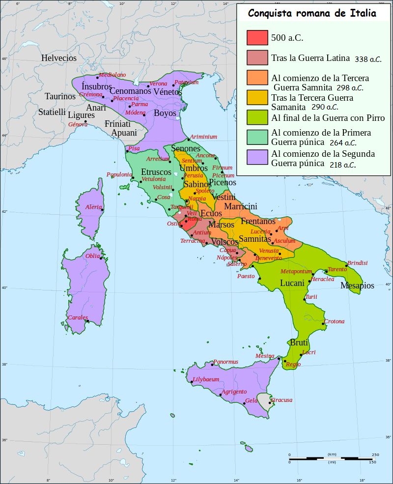 La expansión romana en Italia cubre una serie de conflictos en los que Roma pasó de ser una pequeña ciudad-estado italiana a ser el gobernante de la península italiana. Un proceso que llevó alrededor de 500 años.
