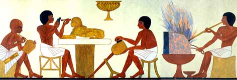 - El antiguo Egipto era un país de comerciantes. Había muchos pintores, escultores, herreros, constructores navales, alfareros... Muchos artesanos trabajaban en los comercios cercanos al palacio del faraón.